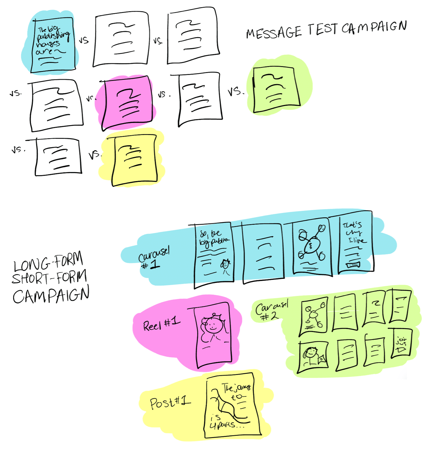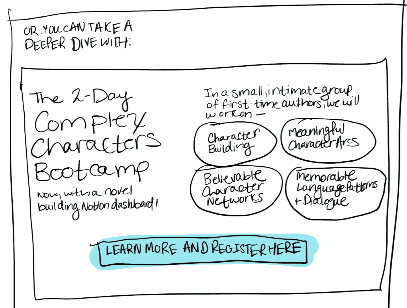 Hint: We dive into building out the best “prerequisite product” for you inside the Idea-First Platform Intensive. As you scroll further on this website, you come across a unique bio that introduces the thought leader more fully.But, this bio is not like the standard bios that have proving energy behind them (listing all the degrees, awards, or certifications the person can think of). The bio itself helps to reinforce the person's thought leadership and unique angle on their topic. So the bio might start off: "Fiction books (just like TV shows and movies) have been used as tools for furthering racism and prejudices in our society for as long as they've been around. But, fiction can also be used to make positive changes. Hey, I’m Nic, and I first discovered the power of ___ when I ___." And you might be like: Dang. Wow. They’re so . . . different. They’ve thought a lot about ___, which I’m wildly interested in right now. I know for a fact that I haven’t come across anyone else in this industry or goal that I have who thinks and talks like this. This is really refreshing. Hint: In an Idea-First Platform, this is part of a home page or about page (or any place you need a bio) that I call a "Philosophy Origin Story Bio." It's a snippet of your story that really tells how you came to embrace or develop a certain framework, opinion, or methodology of yours. Note: This is one of many exercises (with a follow-along template) inside the Idea-First Platform Intensive. Okay. So far, the things I’ve mentioned above are either elements of an Idea-First Website or are Idea-First Assets that you can develop and hopefully link from your site. But, there are also a few things running in the background of this amazing website that we can't interact with or see upon first landing on the site. One of the items operating in the background of this website and platform is an "email runway."So, while you're scrolling and clicking through Nic's site, if you do happen to sign up for a resource that requires an email address in exchange for the resource, this action will kick off: (1) an email sequence that delivers the resource you signed up for, yes, but also (2) a 6-month runway of emails. This runway exists because even though many people who find out about you/Nic/me/whoever (and get exposed to our work) might purchase our prerequisite products in the same day/week, many people won't join our offers right away. So, we can set up a longer runway of emails—for those who need it. Through these 2–3 emails per month, you can fill in gaps (from the 8 marketing gaps we talk about in Publish One Year of Bold Ideas and the Idea-First Platform Intensive, among other programs)—connection, belief, desire, safety, skills, (un)learning, architecture, and systems thinking. As you fill in these gaps with targeted and purposeful emails, more and more of your potential clients will likely join your prerequisite offer over time. In Nic's case, people will join their 2-Day Complex Characters Bootcamp. Two other things operating behind the scenes in an Idea-First Platform (that we can't tell by scrolling through the homepage of a website, but that are helping the website and the thought leader be so potent and effective) are: Two types of optional, lean budget ad campaigns . . .These campaigns are like strategic reconnaissance missions that cost $70–$120. Note: you might only do one per year, or you might do 3 or 4 of them in the year. In each message test, you have a specific Spark Piece, asset, or resource in mind. So, in Nic’s case, they might be thinking about their 5-day email course, their essay, or their “shapeshifting training” to start. Let’s say it’s the email course. Nic would test out 7–12 different messages against each other in a special ad campaign (note: I’ll show you how to set it up inside the Intensive) related to, and guiding people to, the 5-day email course. When you're building a whole world around truly complex characters (instead of same-same characters), using a tool like [insert more text here]. ​ vs. ​ You feel the world of fiction is severely lacking representation in the main characters whose stories get featured most often. What if I told you [insert thing here]. ​ vs. ​ Etc. When you do this, you're seeking to understand which language patterns, concepts, frameworks, opinions, philosophies, etc., get the strongest response. You get to learn how to package your revolutionary, uncommon, and/or helpful ideas for maximum impact for about $100. Once you find the 3 or 4 winning messages, you can take the time to craft “long-form short-form” pieces (which are more robust carousel lessons, reels, etc.) out of them that you can first post organically, then optionally turn into lean budget ads (for $1+/day) that consistently, effectively lead to your best Spark Pieces and Prerequisite Products. But, whether you join us for the Intensive or not, I wanted to share what I consider the missing link for many ideapreneurs who think differently—an Idea-First Platform . . . Which is (imo) the foundation to YOURNAME's Changemaking Universe . . . ex: Nic's Changemaking Universe. When you think about all the items above, do you feel like they would form a really solid platform for you? Do you think that any YouTube channel, podcast, or search engine optimized blog you create or maintain would benefit from such a solid, structured, and strategic platform to lead all potential community members and clients back to? What about your social media accounts (if you use them)? Would it help to have a platform like this running in the background? — I'll leave you with the thought below—about one of the things I love most when people doing meaningful work adopt this type of platform. An Idea-First Platform is designed for, and truly holds space for, the absolute best fit community members for you. Why? Because your ideas, approaches, philosophies, values, frameworks, and cor